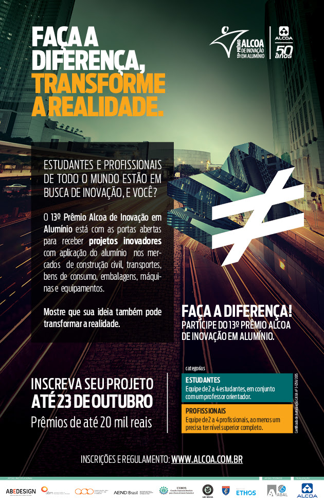 Esta é uma iniciativa importante da Alcoa, que no ano em que completa 50 anos de história no país, reafirma seu compromisso com o Brasil e os Valores da Companhia, ao incentivar a Inovação e o uso do alumínio entre públicos que contribuirão para a construção do futuro das próximas gerações: estudantes e profissionais de mercado, das mais diferentes áreas de atuação.