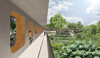 O OMA Nova York projetou uma nova ponte de pedestres de 145 metros sobre o rio Apatlaco que busca conectar o lado leste e o centro de Jojutla de Juárez, Morelos, como parte de um esforço de reconstrução do Infonavit após os danos estruturais e ambientais na área após os terremotos de 2017 no México: casas construídas nas margens do rio sofreram colapso, a linha principal de drenagem sofreu fraturas, espaços abertos foram ocupados com aterros sanitários e a dificuldade de atravessar o rio foi agravada pela destruição da ponte principal.