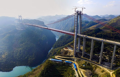 O delírio chinês de construir pontes monumentais ainda não acabou. Depois de inaugurar a primeira passagem feita totalmente de vidro, a imprensa chinesa exibe agora os últimos ajustes de sua mais nova conquista. Com 406 m de altura, a ponte que atravessa o rio Qingshui, em Gansu, será a segunda mais alta do mundo, e será inaugurada no dia 25 de dezembro deste ano. Entre as modificações de último minuto estão a aplicação de asfalto e a impermeabilização total da passagem.