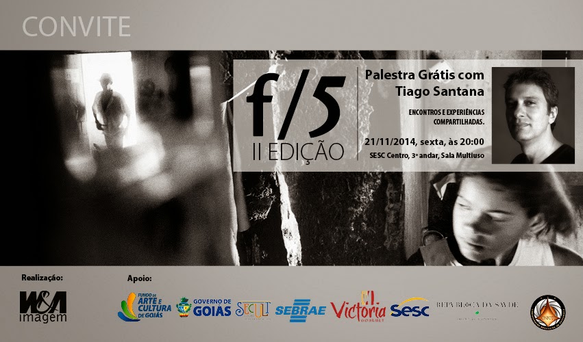 O projeto, que está sendo realizado durante todo o segundo semestre de 2014, visa aprofundar as discussões sobre fotografia contemporânea e fomentar encontros que aprofundem os profissionais tanto em aspectos técnicos, quantos criativos. Convidado desta etapa do projeto F/5, Tiago Santana é fotógrafo, nascido no interior do Ceará. O nordeste brasileiro é seu principal cenário, compostos por temas e personagens que refletem a realidade social e cultural das regiões.