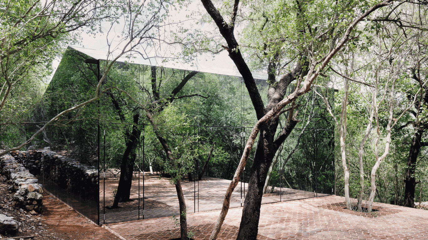 A arquiteta mexicana Tatiana Bilbao usou vidro espelhado, juntamente com terra batida e tijolos de argila, para criar uma casa de férias que se mistura à natureza do lugar onde foi construída na cidade de Monterrey, maior cidade do estado mexicano de Nuevo León.