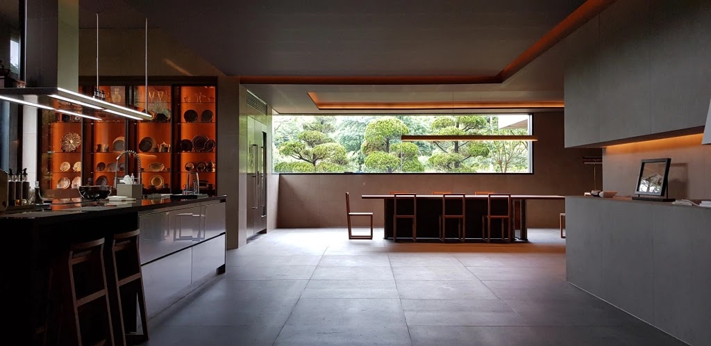 O cenógrafo também se colocou como arquiteto contemporâneo na decoração. Escolheu um sofá fino e reto. Poucos móveis. Nada de TV. O que se vê é o dia. O que se recebe naquela imensa tela de vidro é o privilégio de ter o Sol como companhia. A madeira escura está por toda parte, assim como a transparência do vidro. Os móveis são cinza. Assim como é cinza o grande quadro na sala que representa uma floresta. Essa tela, sim, foi feita por um artista real: Seung-Mo Park. A tela faz parte de uma série chamada Maya do artista sul-coreano (o mesmo artista fez uma segunda tela especialmente a pedido do diretor e do cenógrafo. Ela retrata gatos e fica no piso superior, no corredor). Mais detalhes, Confira!