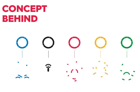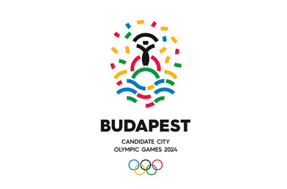 Parece que a capital da Hungria, famosa por suas águas termais e pela qualidade de vida dos habitantes, optou por um caminho mais flat, com menos degradês e mais brincadeiras com a desconstrução da forma dos aros olímpicos. A referência aos pontos fortes da cidade também existem, mas o desenvolvimento é mais abstrato, bem icônico.