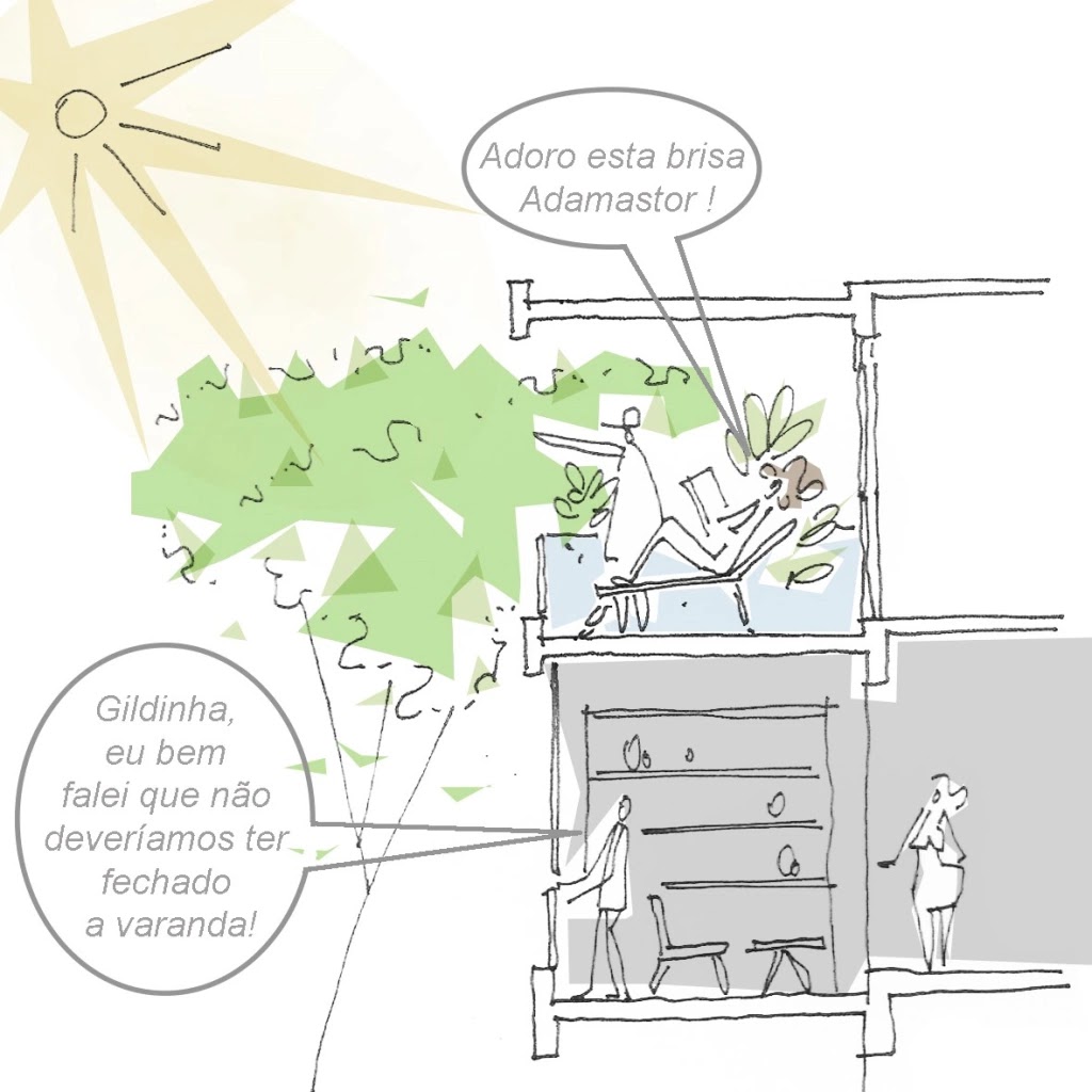 “Acho que nunca falamos tanto de arquitetura. Por exemplo, aquelas pessoas que fecharam as varandas de seus apartamentos e agora queriam usar aquele espaço para tomar sol, ficar no ventinho; e teve gente que construiu 90% de uma cobertura, sem deixar espaços abertos; ou quem pintou a casa em tom muito escuro e se sente mais confinada ainda; ou uma rua mal planejada. Ou seja, a ideia foi misturar um pouco do bom humor, tornar a pausa da descompressão e fazer pensar. São várias coisas entre arquitetura e o cotidiano”, conclui.