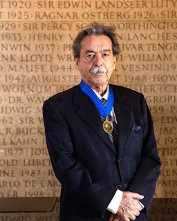 Em jantar de gala, o arquiteto e urbanista Paulo Mendes da Rocha recebeu na quarta, dia 1º, em Londres, a Medalha de Ouro Real concedida pelo Royal Institute of British Architects (Riba). Dada em reconhecimento do trabalho de uma vida, a premiação é aprovada pessoalmente pela rainha inglesa e é concedida a uma pessoa ou grupo que tenham exercido uma influência significativa, direta ou indiretamente, para o avanço da Arquitetura mundial. Concedido desde 1848, a lista dos ganhadores da Medalha de Ouro do Riba inclui Zaha Hadid (2016), Frank Gehry (2000), Norman Foster (1983), Frank Lloyd Wright (1941) e Sir George Gilbert Scott (1859). Oscar Niemeyer (1998) foi o único outro arquiteto brasileiro a ter recebido a honra.