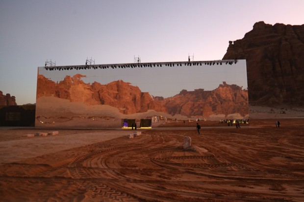 Parece miragem, mas é real. Arquitetos italianos do Studio Gioforma, sediado em Milão, criaram um teatro inusitado em meio ao deserto da região de Al-Ula, na Arábia Saudita. Com dois de seus lados inteiramente revestidos com espelhos, o projeto reflete a beleza natural do entorno.