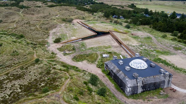 Subterrânea, a ampla e moderna construção se camufla a paisagem e se revela aos poucos através de quatro fendas que cortam a duna ao lado do bunker, formando passagens que se cruzam no centro do projeto e dão origem a um pátio cheio de luz.
