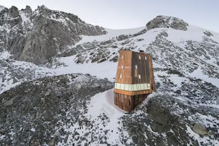 Cabana revestida com cobre se destaca em meio aos Alpes italianos