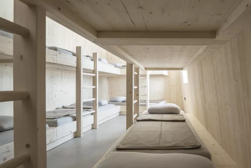 O térreo conta com um amplo restaurante e uma janela que oferece vista panorâmica de 360° para o cenário montanhoso. Já os andares inferiores são destinados às áreas de serviço. Por fim, os três últimos andares contam com dormitórios com camas para até 50 visitantes. Os quartos foram projetados para duas ou dez pessoas e possuem janelas com vista para os Alpes.