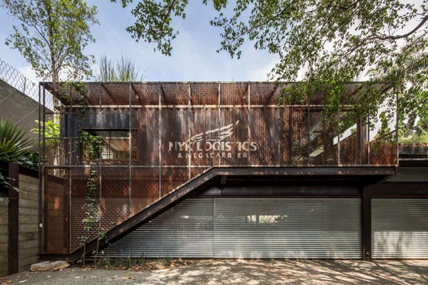 Com inspiração industrial, a casa foi construída com módulos de contêineres marítimos e estruturas metálicas. Para garantir conforto térmico, todos os ambientes possuem janelas em alturas diferentes, o que permite uma ventilação cruzada. A parte externa recebeu tinta cerâmica que, junto com o telhado verde, ajuda a manter a temperatura agradável dentro de casa, dispensando o uso de ar-condicionado diariamente.