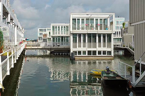 Na Holanda, casas flutuantes são solução para era do aquecimento global. O aumento do nível do mar ameaça áreas costeiras em todo o mundo. Como na Holanda, onde engenheiros e arquitetos desenvolvem projetos pioneiros para permitir que a população viva com a água em vez de combatê-la. As casas flutuantes são a resposta dos holandeses para o aumento do nível do mar e da precipitação pluvial, resultantes das mudanças climáticas. Já hoje, um terço do país se encontra abaixo ou exatamente no nível do mar. E este está subindo: nos próximos 100 anos, 1,30 metro; em 200 anos, até quatro metros. Essas são as previsões dos especialistas da Comissão Delta, do governo de Haia.