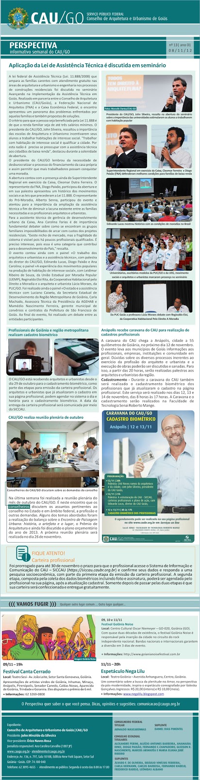 Os informes sobre o Seminário da Lei de Assistência Técnica estão bem bacanas.