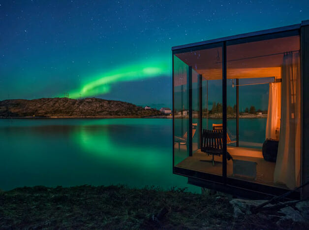 Misturando modernidade e elegância, o resort The Manshausen Island, na Noruega, é um excelente exemplo da mistura da natureza com a inteligência para construir um local perfeito para se assistir um dos grandes espetáculos do planeta: a aurora boreal.