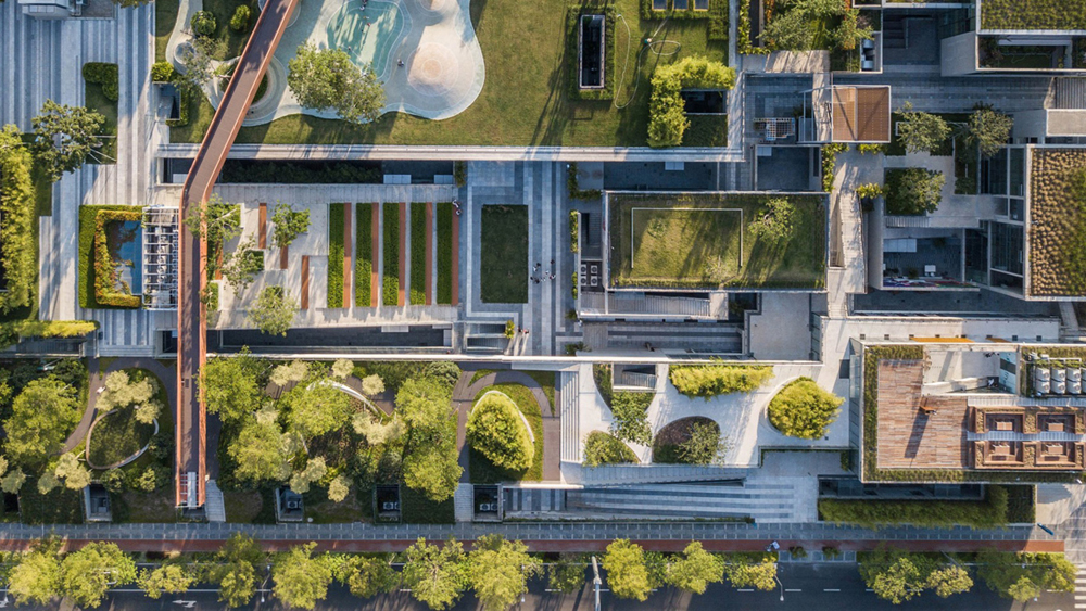 Um condomínio de escritórios com espaços compartilhados foi desenvolvido para a cidade de Shenzhen, na China. Construído para ser um hub de design, arquitetura e urbanismo da cidade, o Vanke Design Community foge dos tradicionais ambientes áridos e claustrofóbicos dos centros de negócio, criando espaços abertos, iluminados e com diversos parques públicos e áreas verdes em sua cobertura.