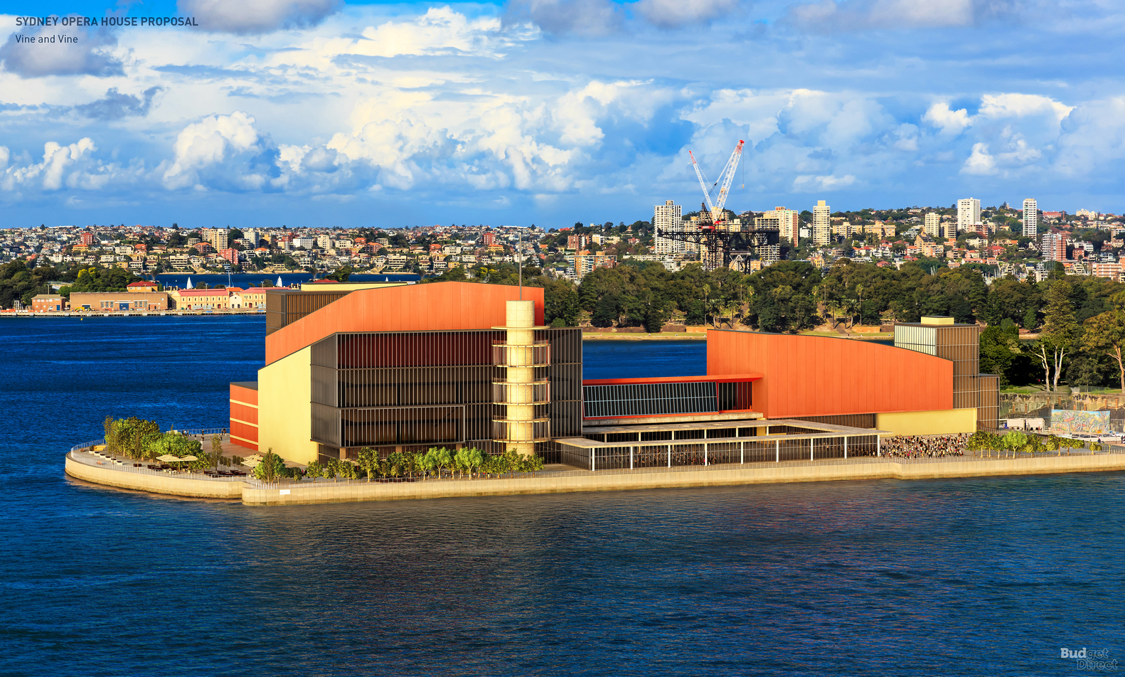 Budget Direct: O projeto que ficou em segundo lugar no concurso tinha forma de submarino e foi criado por uma equipe improvisada de sete arquitetos da Filadélfia. Assim como o projeto vencedor de Utzon, a estrutura foi inspirada em formas marinhas e conchas, tudo concebido segundo as mais avançadas técnicas para o uso do concreto.