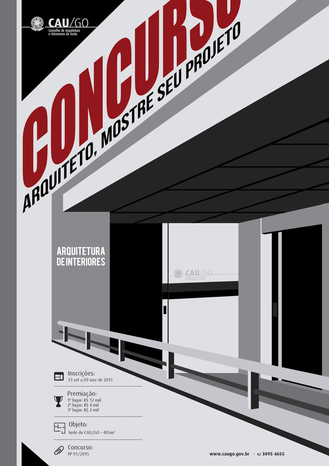 O Conselho de Arquitetura e Urbanismo de Goiás (CAU/GO) convida a todos os arquitetos do estado e do país a se inscrever para o concurso “Arquiteto, mostre seu projeto”. O objetivo é premiar o melhor anteprojeto de Arquitetura de Interiores, visando a adequação da sede da autarquia, em Goiânia.