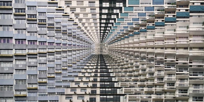 As colagens são elaboradas a partir de fotografias das fachadas de edifícios icônicos – como Edifícios Chipre, Gibraltar e Nações Unidas -, cuja arquitetura é notável no dia a dia de quem vive na metrópole. Em sua pesquisa, a artista propõe uma reinvenção da contemplação, protagonizando a fotografia expandida através da experimentação da perspectiva, do enquadramento e cinetismo. Assim, amplia a função do registro representativo da realidade e afirma uma nova função da fotografia na arte contemporânea, dando vasão à arte interativa – daí também se explica o nome “Vertigem”, dada a sensação de movimento ao expectador mesmo quanto estático.