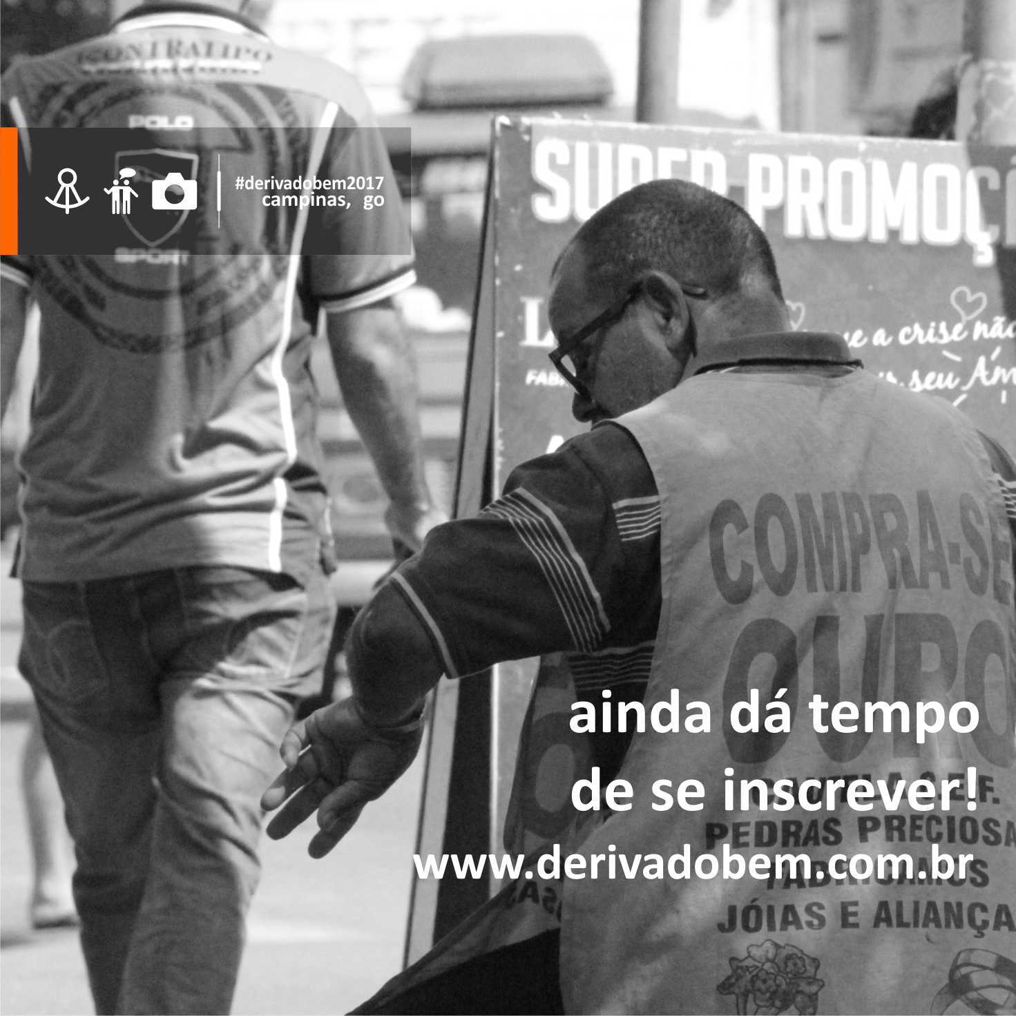 Faltam 3 dias para a realização da Deriva do Bem. Temos a alegria de realizar esse projeto e convidar você a ser um derivante juntamente conosco e juntos compartilharmos dessa experiência tão agradável que se propõe a caminhar pela cidade e refletir sobre cidade, sociedade, cultura e nosso papel enquanto cidadão. Ainda dá tempo de se inscrever e se programar para estar conosco, com sua câmera, celular ou sketchbook. Vem com a gente!