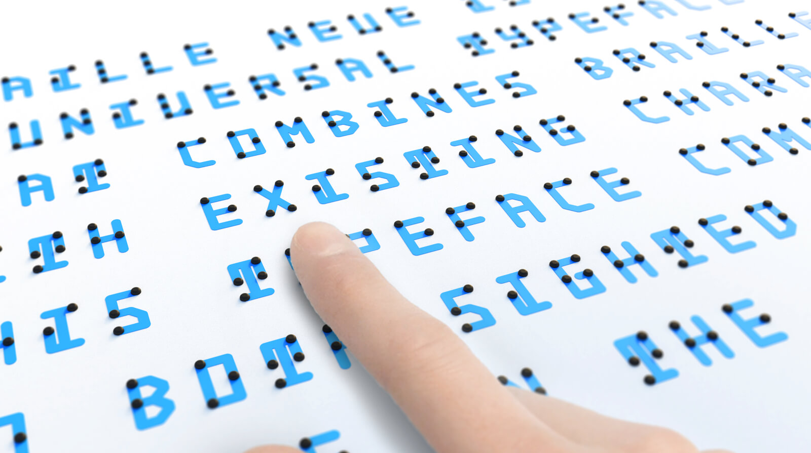 Pensando numa solução para esse problema, o designer japonês Kosuke Takahashi criou a Braille Neue, uma família tipográfica que une de forma muito inteligente a escrita tradicional e o alfabeto Braille.