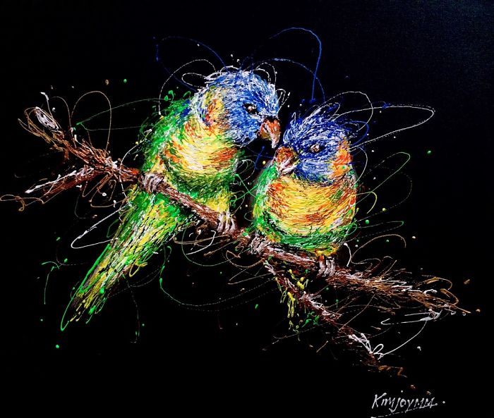 Com uma habilidade impressionante, ela cria incríveis pinturas com esse inusitado objeto.  Vale o Clique!
