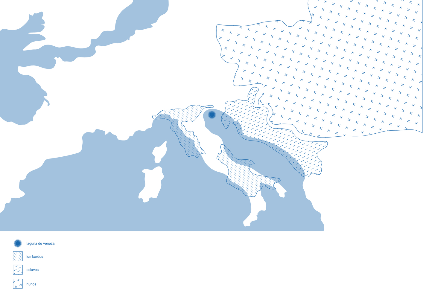 O relato preciso dessa história retoma o contexto do território que hoje conhecemos como a Itália no século V. Em meio à constante ameaça das guerras de expansão que colocavam em risco o norte desse território, a população se viu coagida a encontrar um novo local para a fundação de uma cidade que pudesse garantir isolamento e segurança em relação a este cenário. Do leste, vinha Átila com seu exército de hunos na empreitada de tomar a Europa central. Cem anos mais tarde, a pressão continuava imposta pelos povos eslavos e lombardos que tomavam direção para o norte. Foi esse contexto de verdadeiro cerco territorial que justificou a escolha por um lugar tão inóspito e aparentemente impossível de ocupar.
