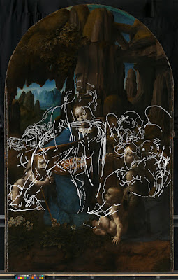 O rascunho foi encontrado sob camadas de tinta da obra “Virgem das Rochas”. Traços do pintor foram descobertos com um sistema de raio-X e imagens infravermelhas e hiperespectrais. Pesquisadores da National Gallery de Londres chegaram à conclusão de que Da Vinci fazia seus esboços com um pigmento à base de zinco.