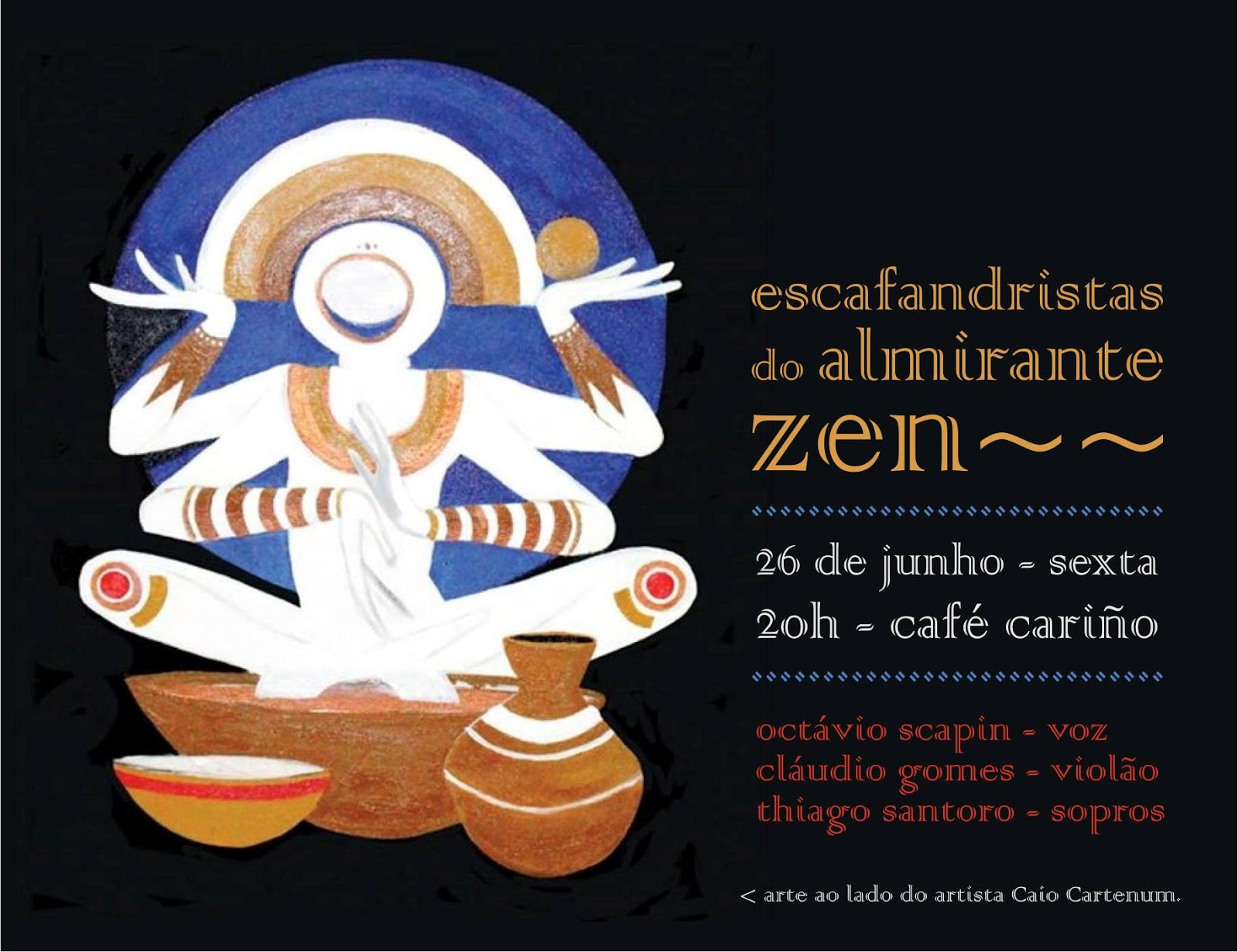 O projeto “Escafandristas do Almirante Zen” é um encontro dos músicos Octávio Scapin, Cláudio Gomes e Thiago Santoro em torno da música popular brasileira, do jazz e de outras modalidades de mergulho em busca de um artefato de resistência construído a partir destas expressões musicais e do alimento da poesia, colaborando na tarefa de sobreviver dentro de um mundo cuja superfície muitos não reconhecem como sua.