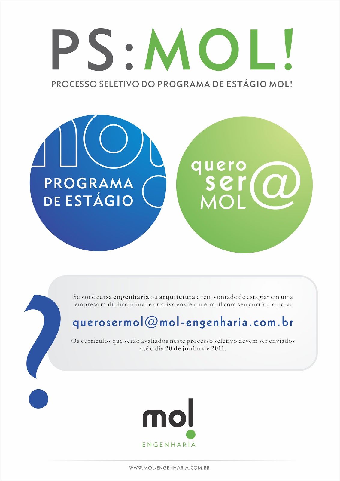ESTÁGIO PARA ESTUDANTES DE ARQUITETURA NA MOL ! ENGENHARIA.