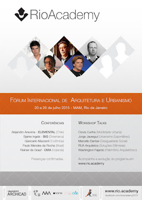 Rio de Janeiro entra para o calendário internacional de arquitetura com o Fórum Rio Academy. Parte das comemorações dos 450 anos da cidade, o evento reunirá grandes nomes da arquitetura mundial entre os dias 20 e 26 de Julho de 2015 no MAM.