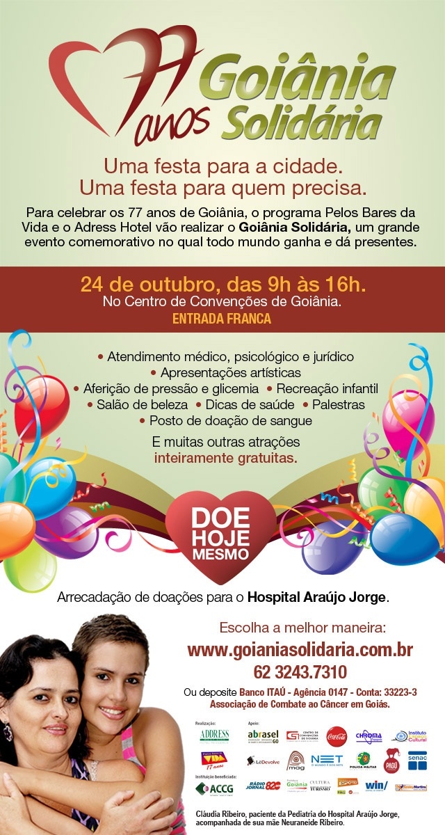 Muito legal essa propaganda.Com essa variedade de atividades e atrações, irá favorecer as pessoas e atraí-las.Quem sabe em uma dessas palestras não irão mostrar um pouco mais sobre a história de Goiânia até os dias atuais. É sempre bom saber como Goiânia era antes e o que se tornou depois.