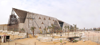 A topografia do terreno junto ao sítio arqueológico de Gizé, o qual cobre uma área de mais de 500.000 metros quadrados, é definida por uma diferença de nível de até 50 metros–escavada na paisagem pela contínua passagem das águas do Nilo. Enquanto as três pirâmides ficam em pleno deserto, o edifício do museu encontra-se encaixado entre o vale do Nilo e o planalto das pirâmides, operando como um elemento de conexão entre duas zonas geológicas diferentes.