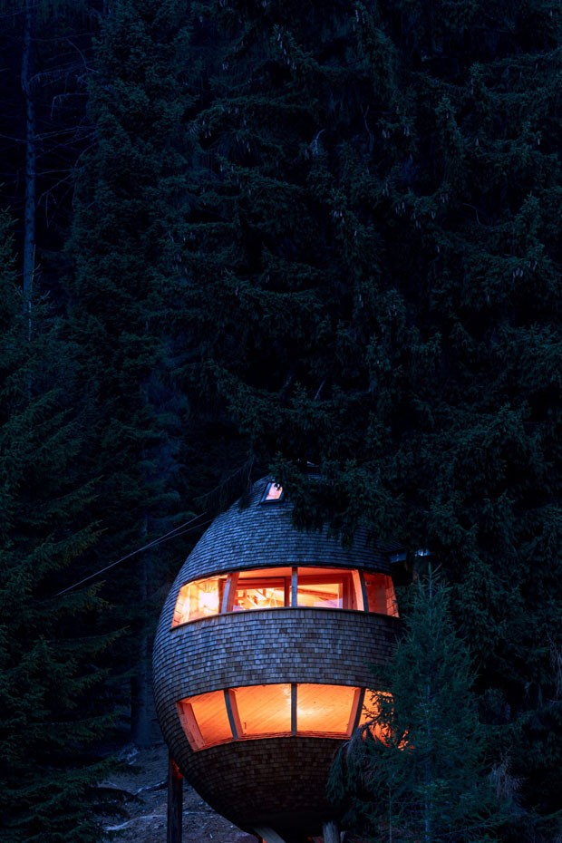 O arquiteto italiano Claudio Beltrame criou uma casa na árvore que tem atraído muitos turistas para a cidade de Ugovizza na região dos Alpes italianos. Tantos holofotes são consequência de a casa ter uma arquitetura que imita o formato de uma pinha, fruto que cresce em árvores das florestas de coníferas da Itália.