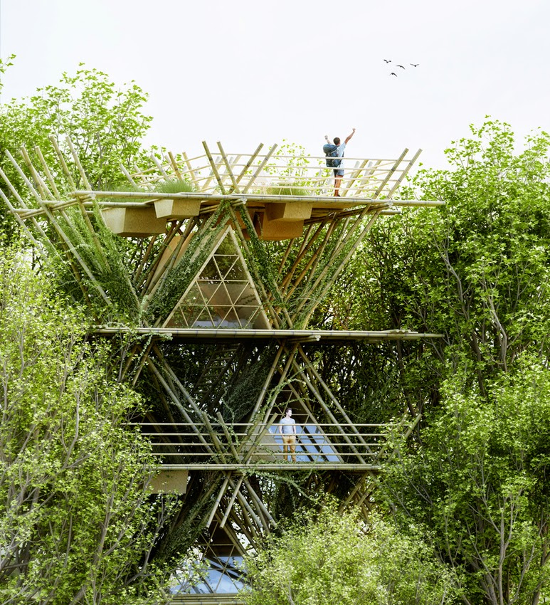 A estrutura modular procura ser ecologicamente correta, e os arquitetos garantem que não há impacto no terreno nem no próprio bambu, que pode crescer e manter sua função estrutural. O projeto dispensa concreto, cola e/ou pregos, o que faz com que o bambu tenha seu estado inicial conservado e possa ser reutilizado neste ou em outros projetos. Vale o Clique!