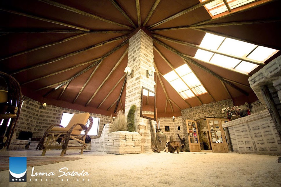 O Hotel Luna Salada foi construído com  nada mais, nada menos do que blocos de sal, na Bolívia. A vista dos quartos é para a mina de sal de Uyuni, região boliviana famosa, que é destino certo dos mais aventureiros.
