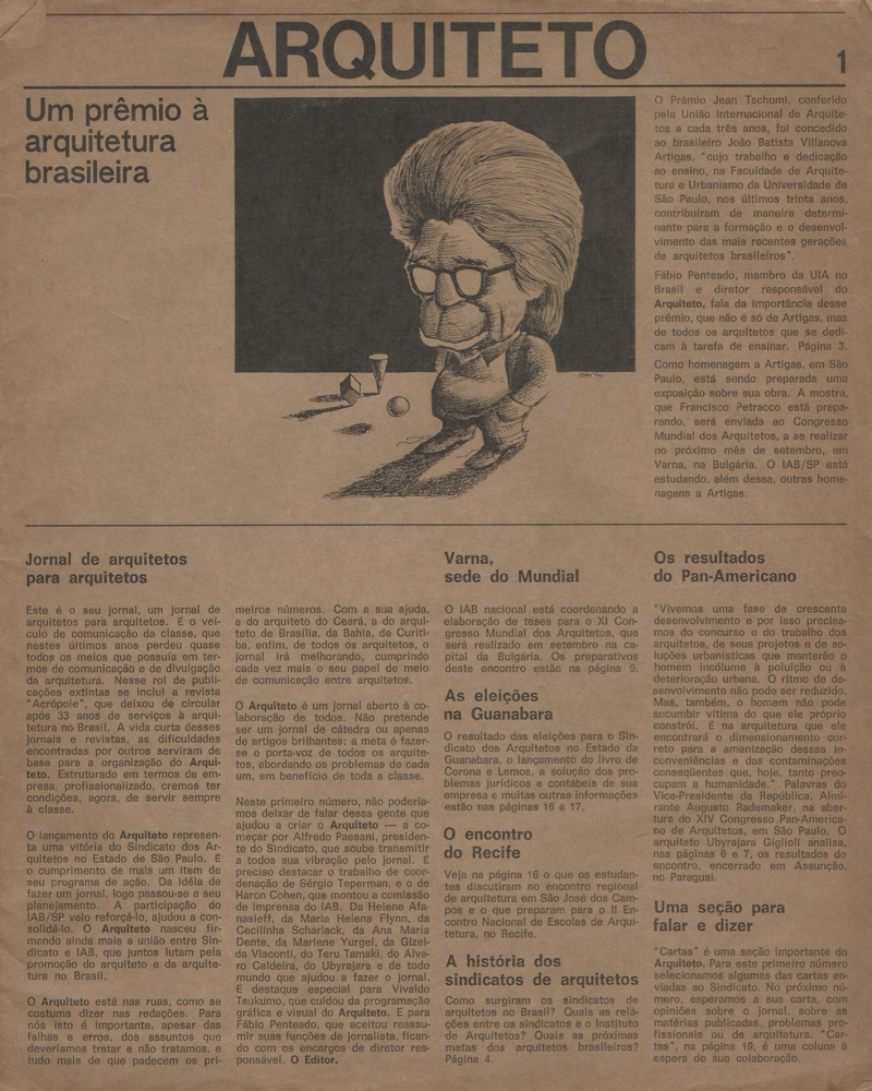 O Instituto dos Arquitetos do Brasil – Departamento São Paulo disponibilizou online as 74 edições do Jornal Arquiteto, publicação relevante do campo da arquitetura e urbanismo editada pelo próprio IABsp em parceria com o Sindicato dos Arquitetos do Estado de São Paulo (SASP) entre os anos 1972 e 1980. O jornal teve tirangens em todo o país e tinha como objetivo ser um “porta-voz de todos arquitetos”.