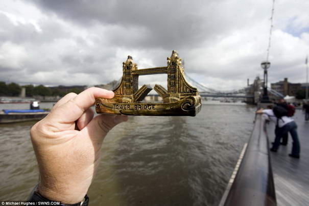 Michael Hughes, fotógrafo nascido em Londres, criou o ensaio fotográfico chamado ”Lembranças”. Ele tem viajado pelo mundo desde 1999 tirando fotografias com réplicas e souvenirs a frente de seus verdadeiros e grandes monumentos. Vale o Clique!