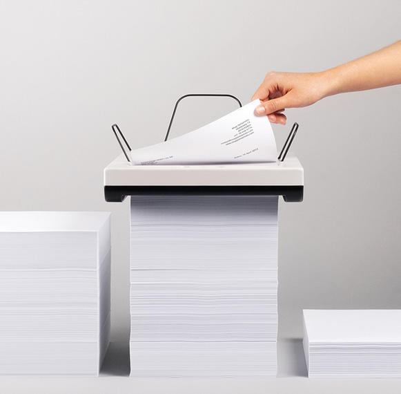 Um conceito criado por Mugi Yamamoto como projeto final de graduação! Trata-se de uma inusitada impressora jato de tinta batizada de Stack. Extremamente leve e compacta ela dispensa o uso de gavetas e bandejas, bastando coloca-la sobre uma pilha de papel. A cada impressão o monte de folhas vai lentamente baixando junto com a impressora. Quando acabar o papel, basta formar outra pilha. Confira!