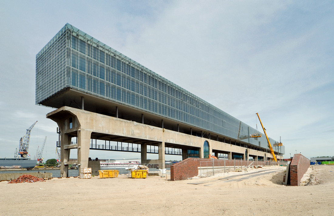O Kraanspoor é um edifício de escritórios transparente e leve de três pavimentos construído sobre uma plataforma de concreto nas imediações do antigo pátio do estaleiro da NDSM (Nederlandsche Dok en Scheepsbouw Maatschappij), uma relíquia da indústria naval de Amsterdam. Esse monumento industrial, construído em 1952, possui 270 metros de comprimento, 13,5 metros de altura e uma largura de 8,7 metros. A nova construção acima possui os mesmos 270 metros de comprimento, com 13,8 metros de largura e acentua o tamanho original do Kraanspoor e a vista espetacular do rio IJ.