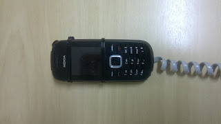 O esquema, que não tem nada de tecnológico, serve para prender o aparelho móvel no escritório .