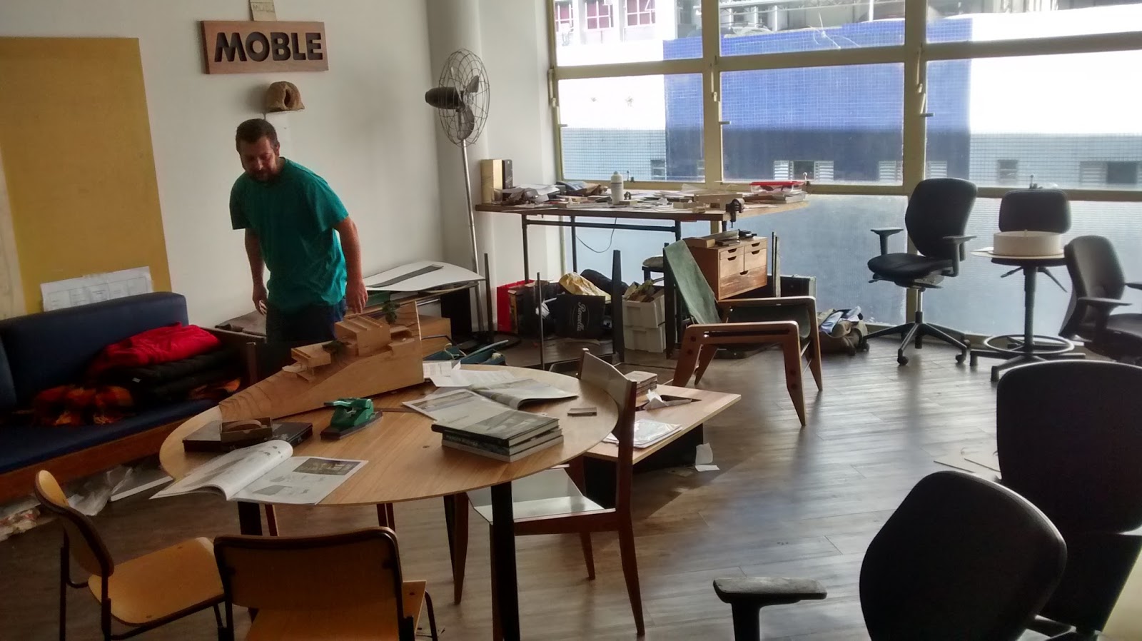Em um dos dias de visitação, tivemos a oportunidade de conhecer o Arquiteto João Paulo Daolio. Visitamos seu ateliê, a MOBLE Arquitetura de Móveis, um espaço super bacana onde João trabalha com maquetaria e desenvolve experiências com design de mobiliário.