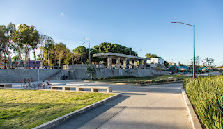 É neste contexto que surge o “Parque Linear do Grande Canal”, concebido pelos arquitetos do 128 Arquitetura y Diseño Urbano, o qual encontra-se implantado ao longo da Avenida del Peñón em direção Norte. Com um longo parque linear construído sobre a estrutura histórica do Grande Canal da capital, este novo espaço urbano transforma e integra ao tecido urbano uma área de mais de 70 mil metros quadrados — e isso é apenas a primeira etapa.