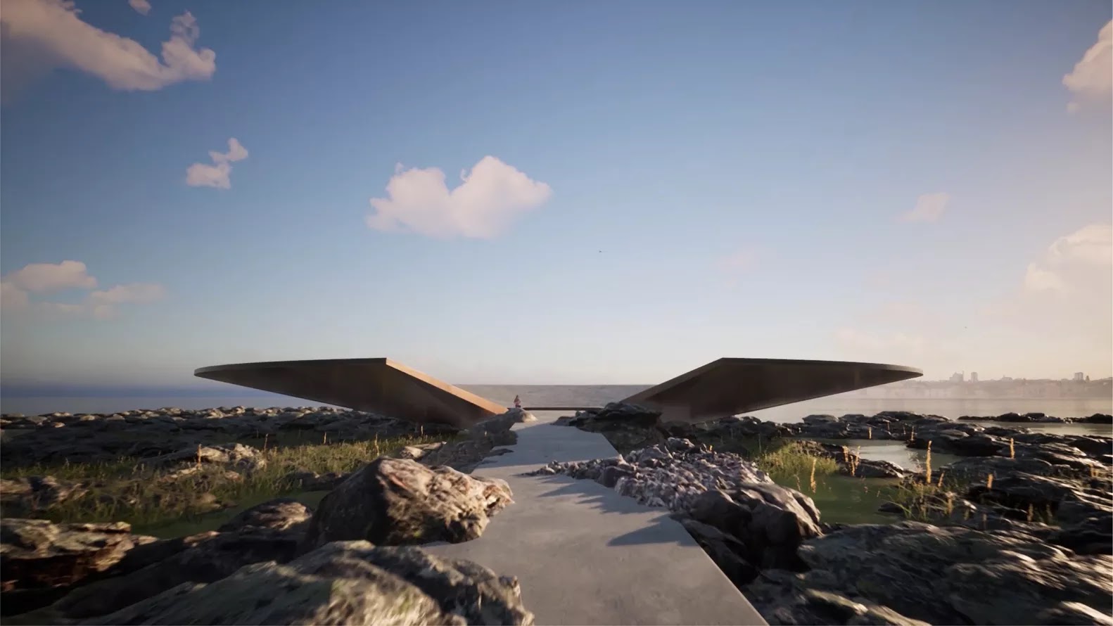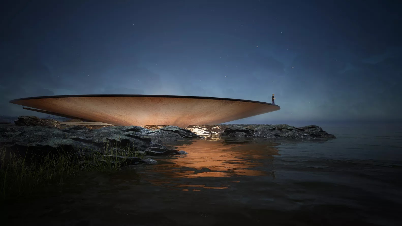 reflexão sobre os impactos humanos no planeta. Ele será construído no limiar da orla marítima, sendo acessível apenas por uma passarela de pedestres. Circular, a estrutura consiste numa plataforma com centro vazio e aberta para o oceano.