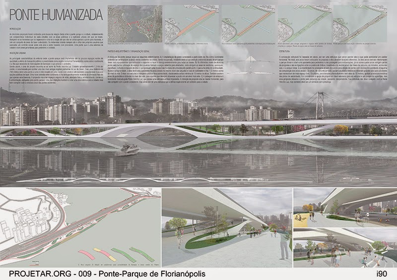 O concurso 009 propôs aos estudantes projetarem uma ponte-parque que funcionasse como quarto elemento de ligação entre o continente e a ilha de Santa Catarina, e que oferecesse ainda um espaço de prática de atividades físicas e lazer para os que atravessarem a ponte a pé ou de bicicleta.