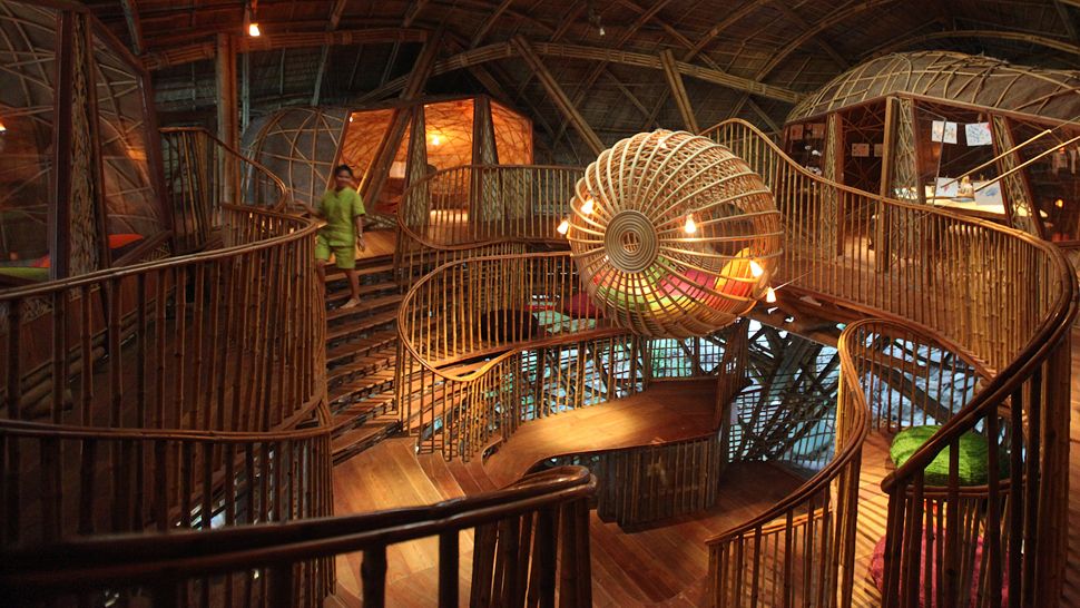 Localizado em uma encosta rochosa próxima ao mar, a cúpula de bambu foi inspirada pelo formato de uma raia manta, com vistas magníficas. A estrutura e o telhado são feitos de bambu local. O interior foi feito a partir de plantações locais de eucalipto e vime.
