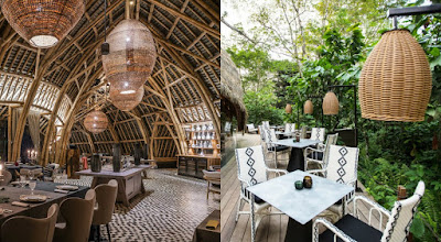 Com tanto primor na construção, o design interior não poderia deixar a desejar. Quase toda a área interna é decorada com o artesanato local, como os móveis e lustres trançados de bambu. A escolha evidencia mais um exemplo da beleza do material natural aplicado na construção civil.