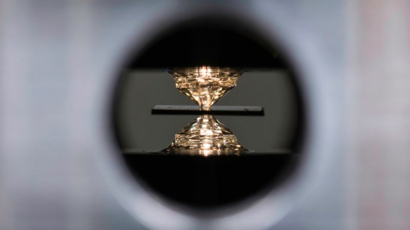Um dispositivo de alta pressão chamado bigorna de diamante foi usado para o experimento A ciência finalmente encontrou o primeiro material com uma propriedade buscada por quase um século: a supercondução à temperatura ambiente.