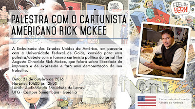 A embaixada dos Estados Unidos da América, em parceria com a Universidade Federal de Goiás, convida para a Palestra com o cartunista americano Rick Mckee a realizar-se no dia 21 de Outubro no período Matutino. Confira!