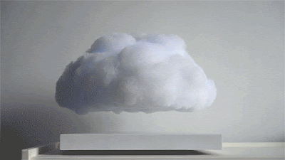 A nuvem flutuante é mantida no lugar por um sistema de imãs, eletroímas e um sensor de localização que mantém a nuvem pairando por todo o tempo. O objeto têm também embutido uma série de LEDs que piscam em resposta aos sons da música ambiente. Vale o Clique!