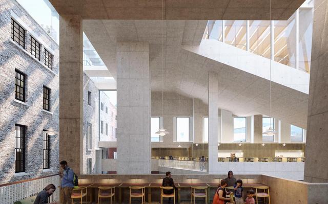 O escritório da dupla recebeu 100 milhões de libras e um prazo de quatro anos para entregar o projeto, que ocupa 11 mil m² e tem seis níveis diferentes que abrigam os espaços de estudo e o acervo em si.