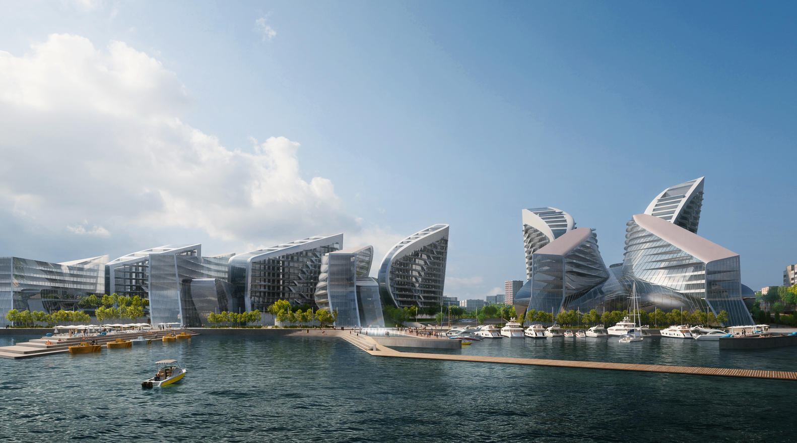 O masterplan de 13,9 hectares visa unir “funções recreativas, culturais, corporativas e ecológicas dentro de uma composição coerente que reinstala o passeio marítimo da cidade como importante espaço cívico.” O esquema, portanto, vê nove edifícios principais orientados perpendicularmente à frente do mar para manter as existentes vistas.